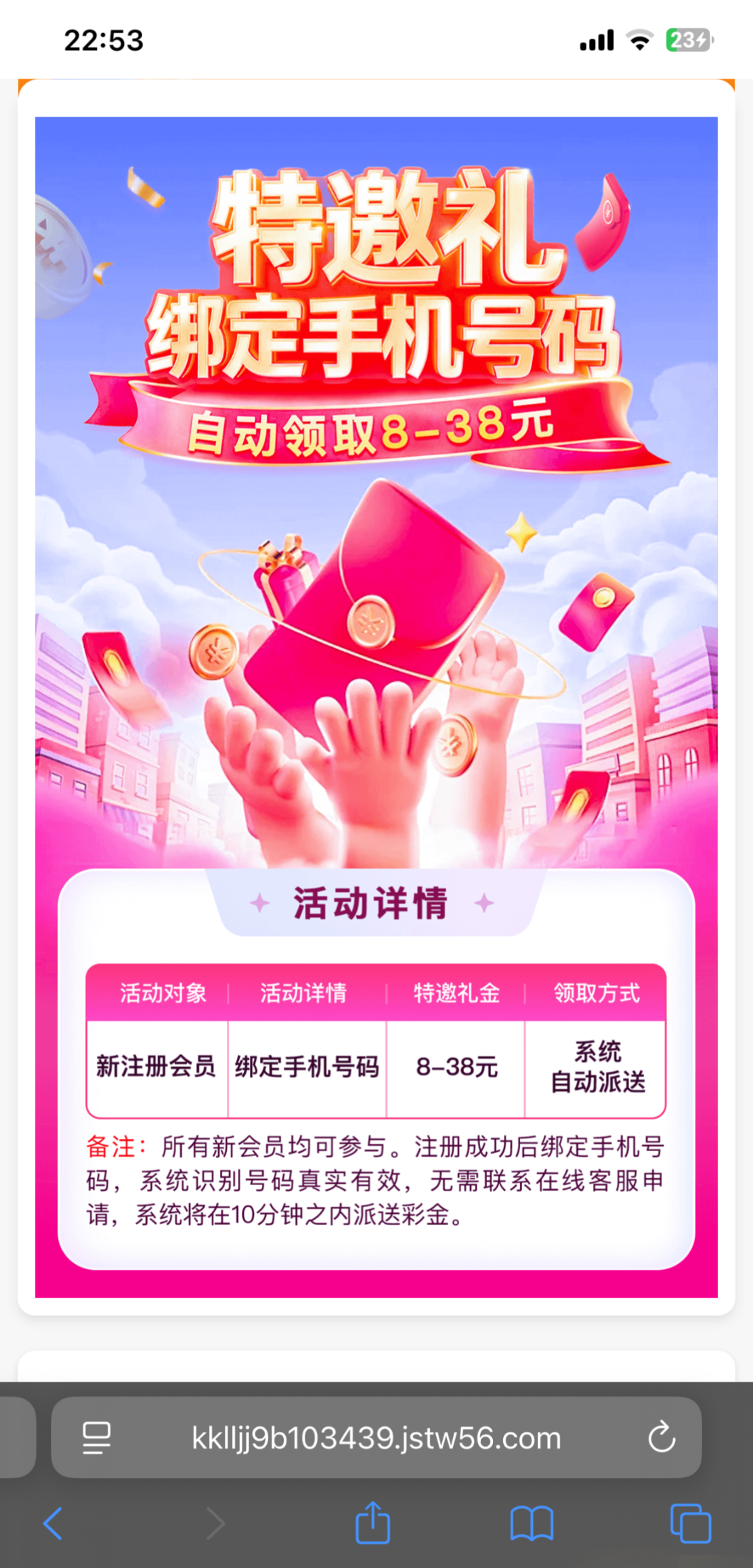 注册绑定手机号10分钟内送8-88没有的联系客服试试