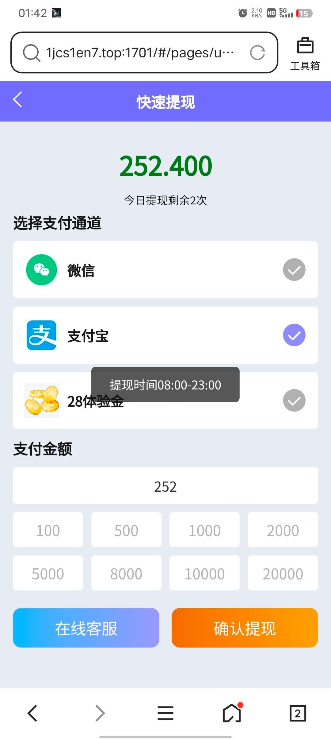 打出来一个,提现时间是早上