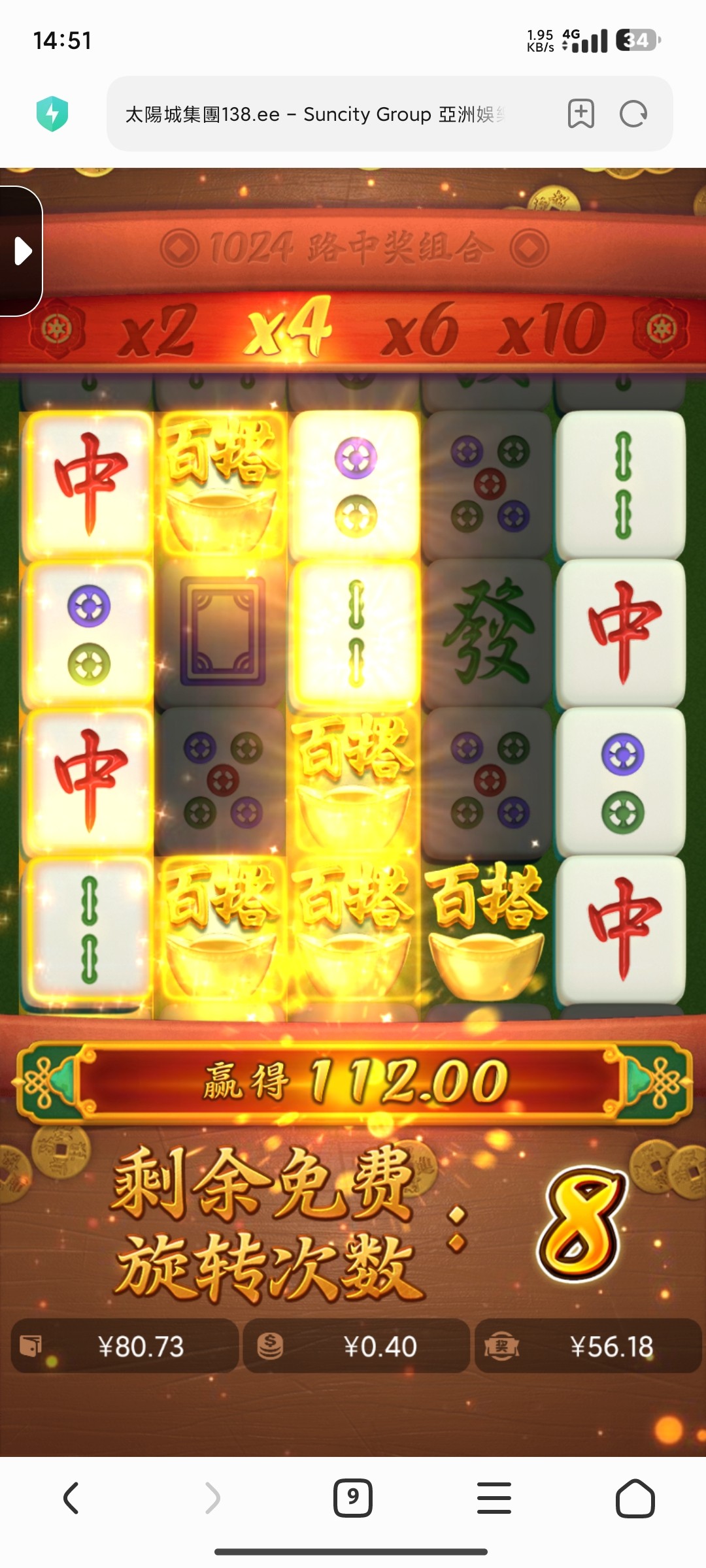 麻一吃一百      原本可以吃227的      想打多一点又输回一百了